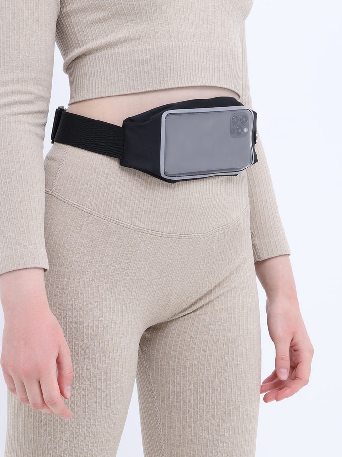 Сумка спортивная на пояс для телефона ONLYTOP, 23 см, цвет чёрный