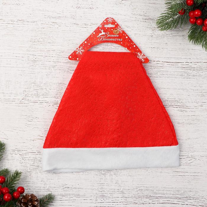 Колпак новогодний "Ворс с серебряными снежинками" 28х40 см, красный