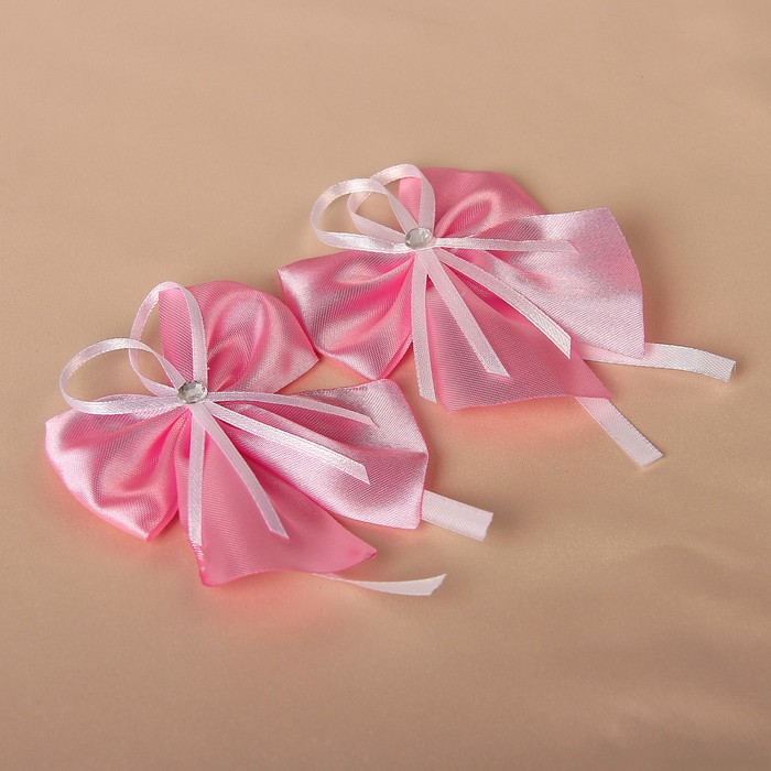 Бант-бабочка свадебный для декора, атласный, 2 шт, розовый
