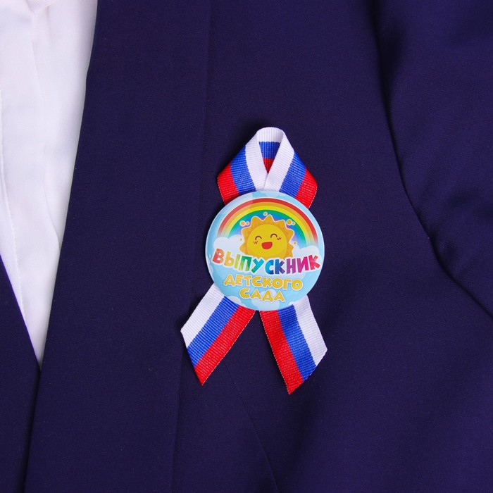 Значок на выпускной закатной «Выпускник детского сада» триколор, d=5.5 см