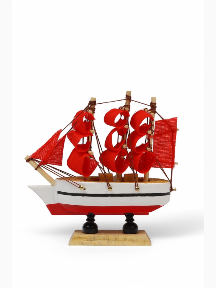 Корабль сувенирный малый «Дакия», борта светлое дерево, паруса алые, 5×23×22 см