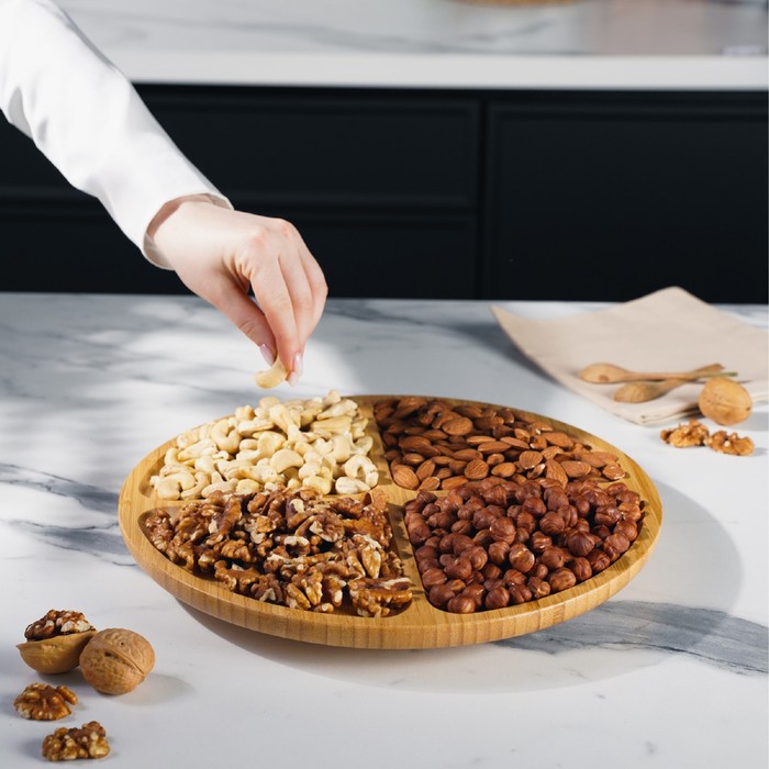 Подставка крутящаяся для подачи Доляна, 4 секции, d=32 см, бамбук