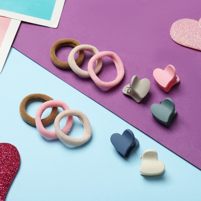 Набор для волос "Солнышко" (6 резинок,10 крабиков) сердца, микс