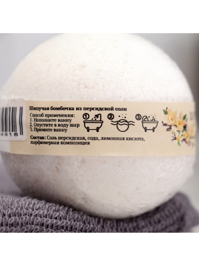 Бомбочка для ванны "С 8 марта с тюльпанами" с ароматом ванили, 75 г, белая