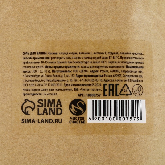 Соль для ванны «Время чудес!» 100 г, аромат миндальное печенье