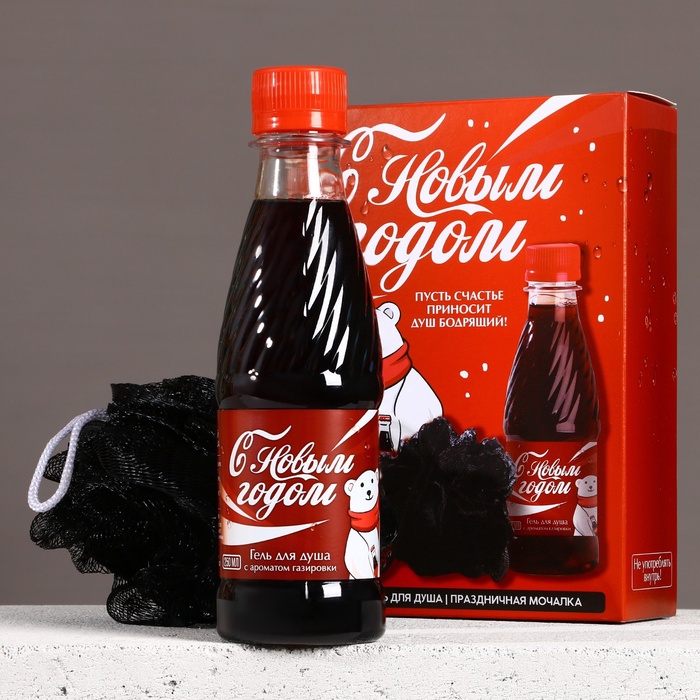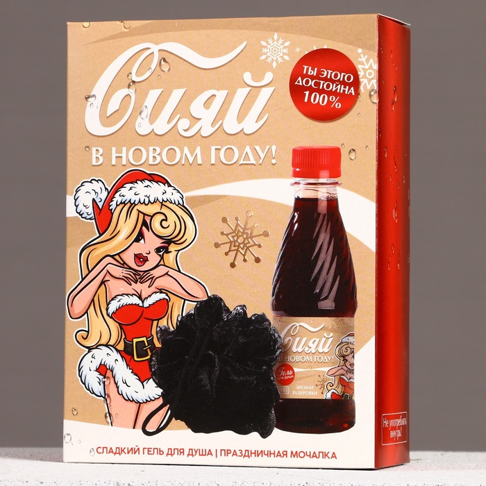 Подарочный новогодний набор «Сияй в Новом году!», гель для душа, аромат газировки, 250 мл и мочалка