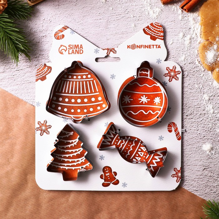 Набор форм для печенья «Прянечки», металл, 4 шт
