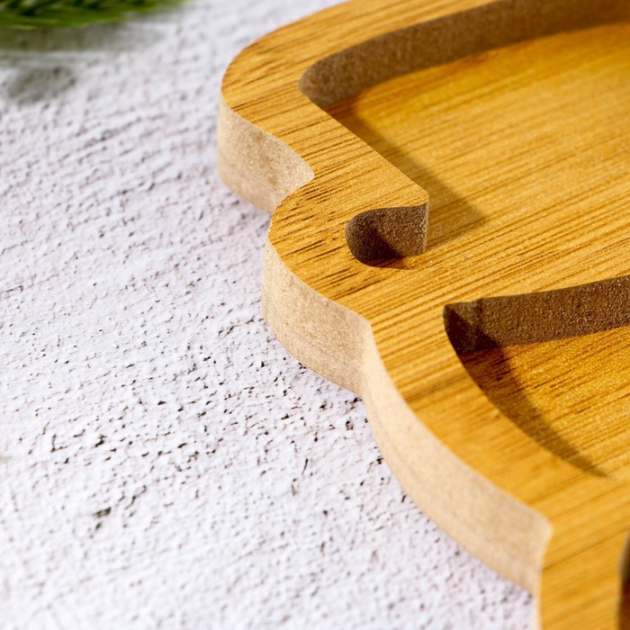 Менажница деревянная новогодняя размером 28,8 х 18,4 см см изготовлена из ДСП и станет отличным дополнением к вашему праздничному столу.
