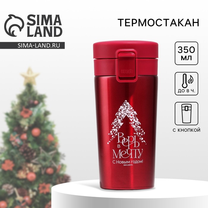 Термостакан с кнопкой Сима-ленд «Волшебных моментов», 350 мл, красный