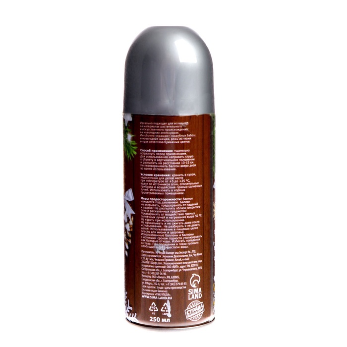 Спрей предназначен для декорирования любых поверхностей. Перед применением тщательно взболтать баллончик. Не использовать на теле и волосах.