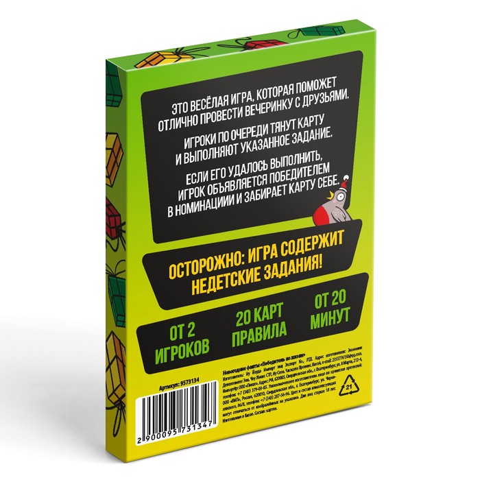 Новогодние фанты «Победитель по жизни», 20 карт, 18+