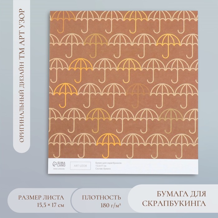 Бумага для скрапбукинга "Зонтики" плотность 180 гр 15,5х17 см