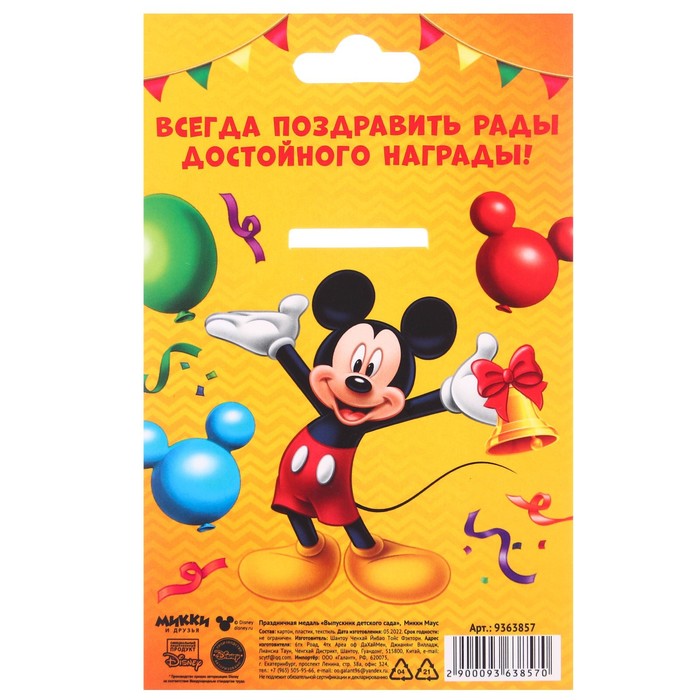 Медаль на ленте «Выпускник детского сада», размер 5,1 х 5,5 см