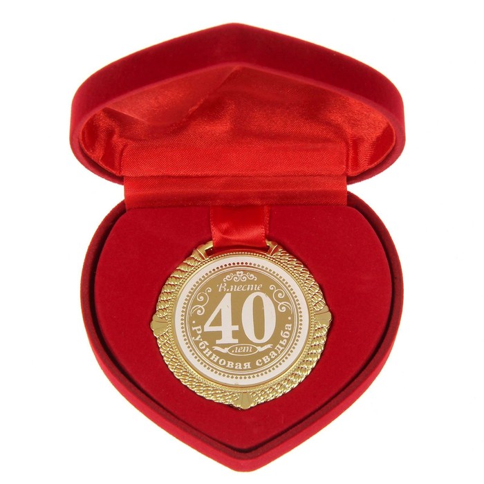 Медаль в бархатной коробке "Рубиновая свадьба. 40 лет вместе", диам. 5 см