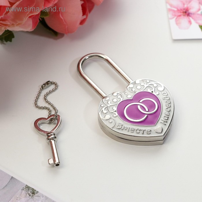 Замок свадебный с ключом «Вместе навсегда», сиреневое сердце