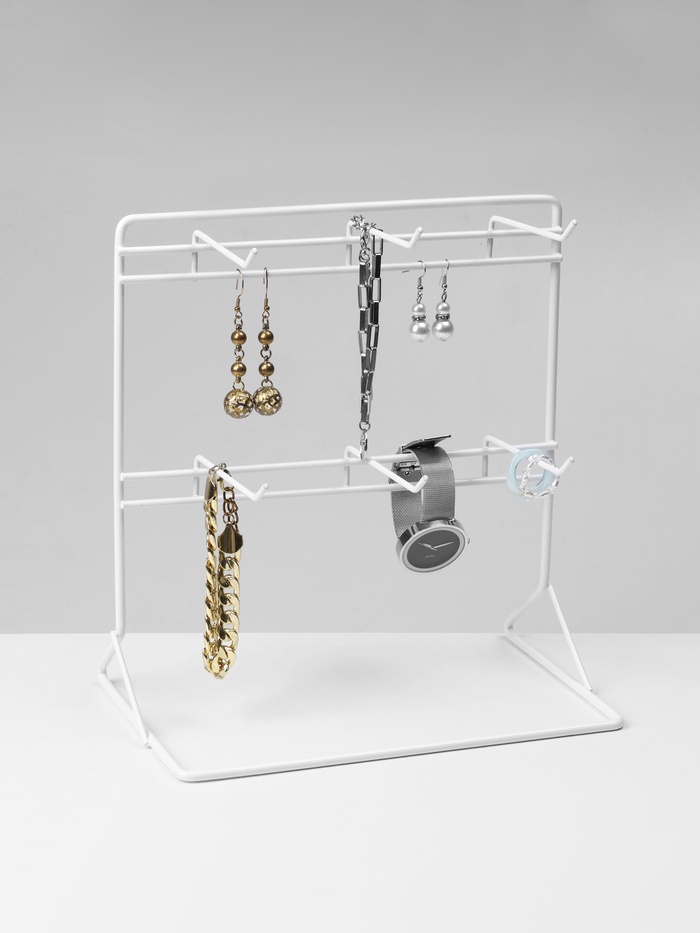 Если вы занимаетесь реализацией разнообразных украшений и аксессуаров, то вам нужно наглядно продемонстрировать свой товар, представив его в лучшем виде. Подставка для украшений "Стойка настольная", 6 крючков 9см, 25*15*26,5см, цвет белый как нельзя лучше справится с этой задачей! У каждого украшения появится своё место, откуда его можно будет хорошо рассмотреть.