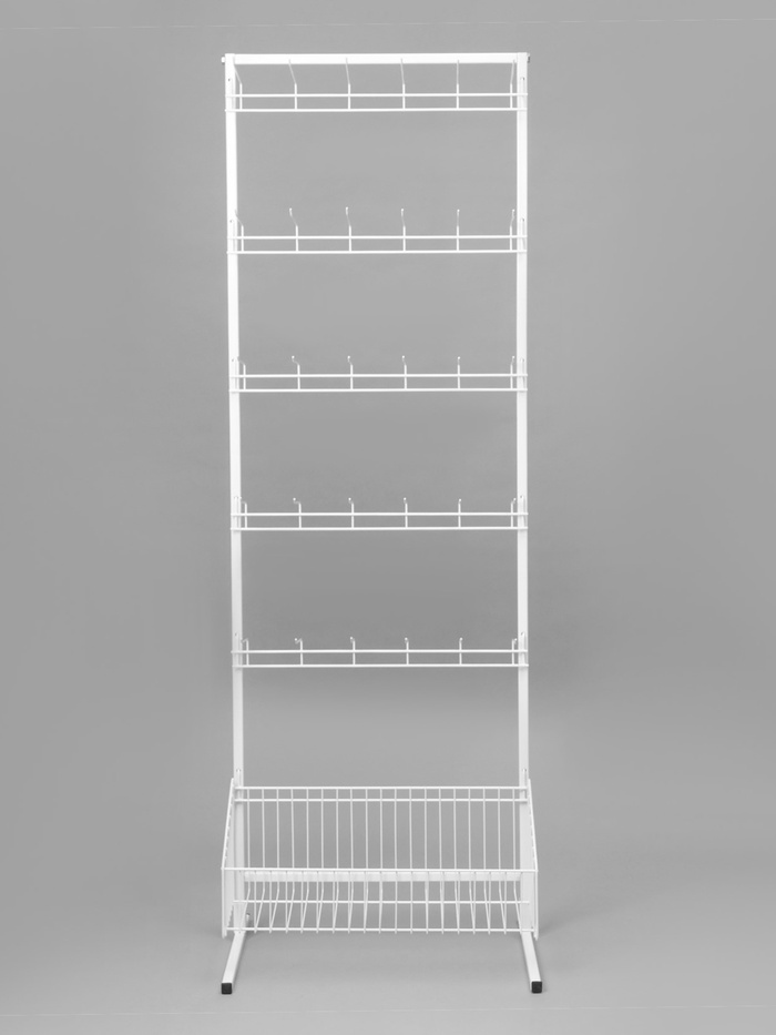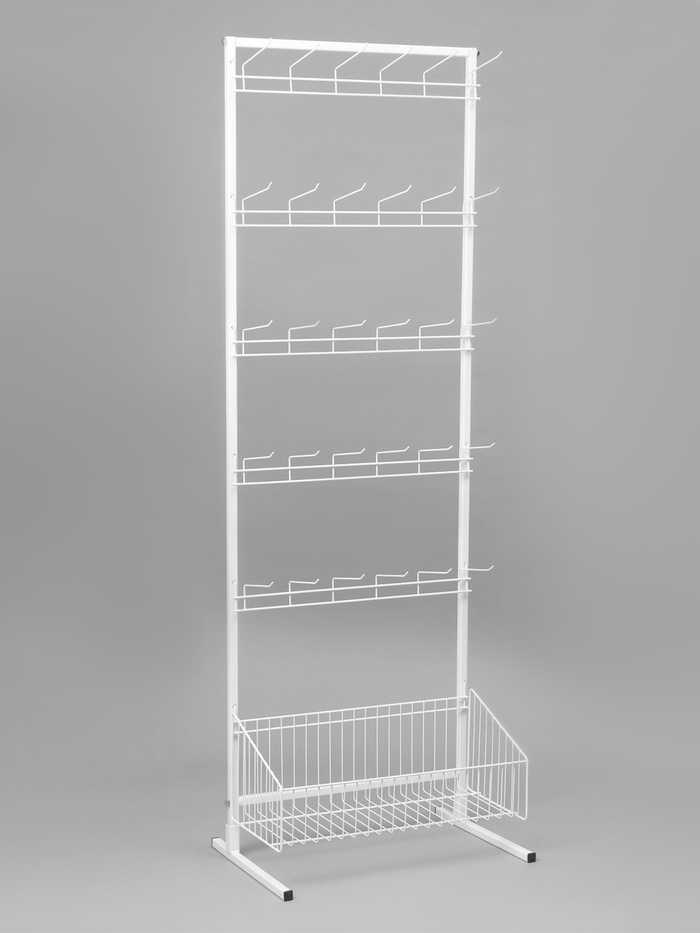 Стойка прикассовая, с 6-штыревой гребенкой и крючками, 64*50*185 см, цвет белый