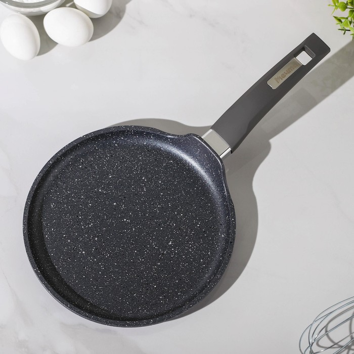 Сковорода блинная, d=20 см, пластиковая ручка, антипригарное покрытие, цвет тёмный мрамор