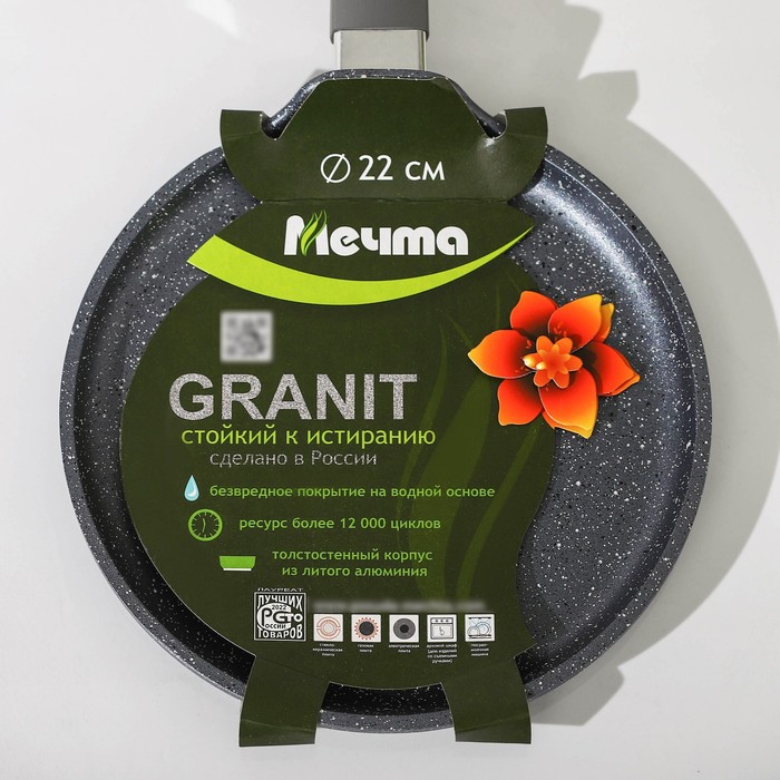 Сковорода блинная «Гранит», d=22 см, пластиковая ручка, антипригарное покрытие, цвет серый