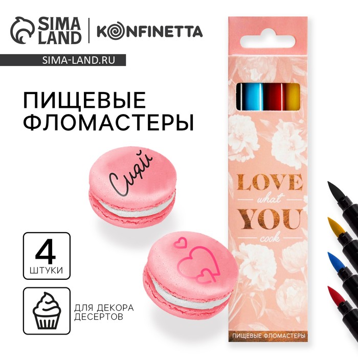 Фломастеры пищевые для украшения десертов, набор: красный, голубой, желтый, чёрный, 4 шт