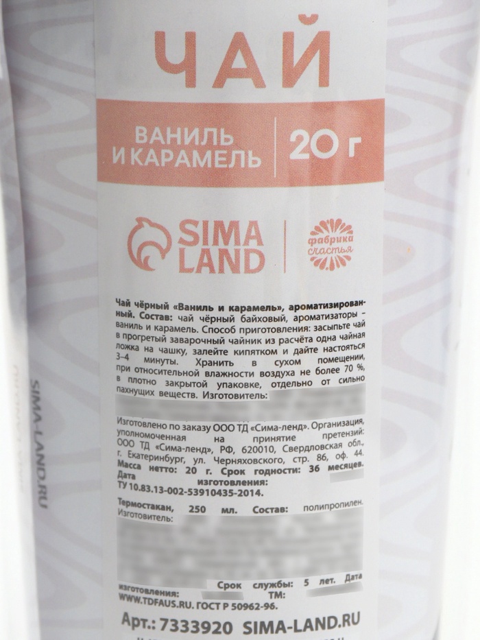 Состав: чай чёрный байховый, ароматизаторы пищевые.