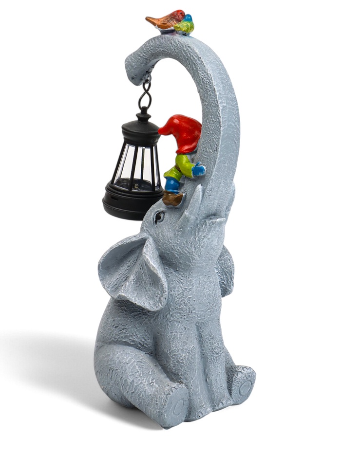 Садовая фигура с подсветкой "Слоник с гномами" 12х10х27см
