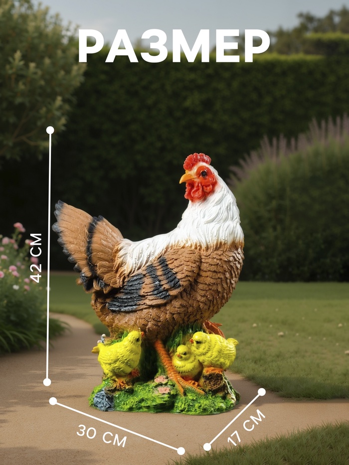 Садовая фигура "Курица с цыплятами" большая 30х17х42см