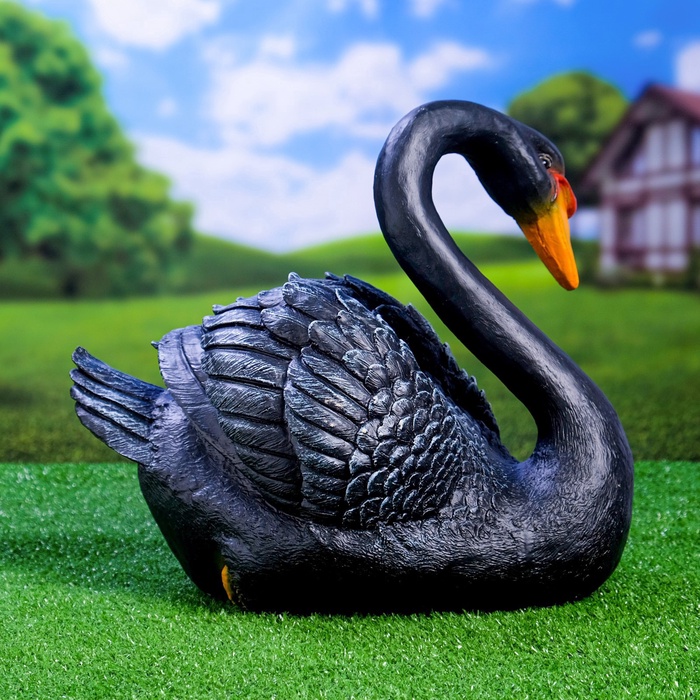 Садовая фигура "Лебедь" черный, 34х25х40см