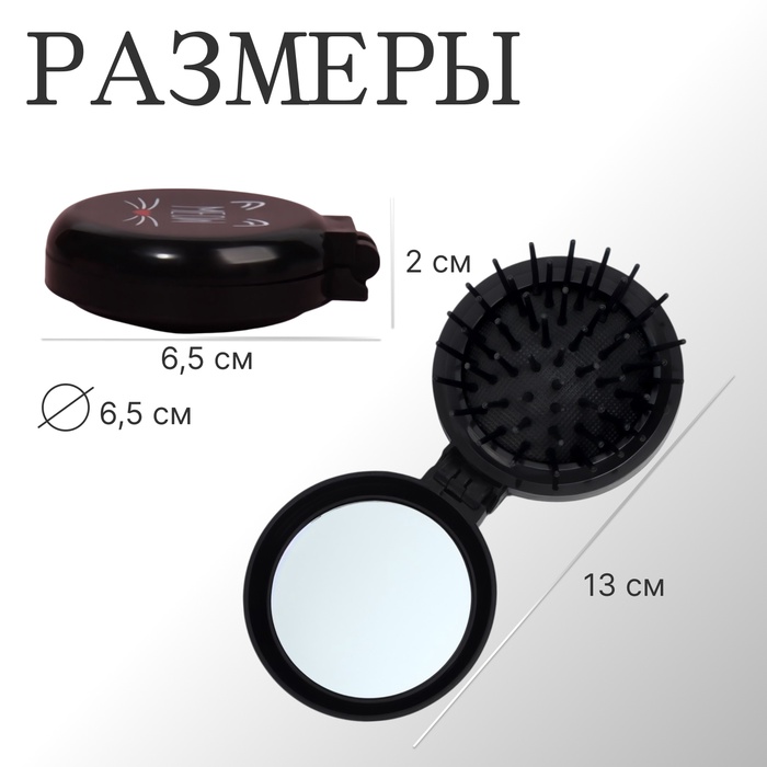Расчёска массажная, складная, с зеркалом, d = 6,5 см, рисунок МИКС