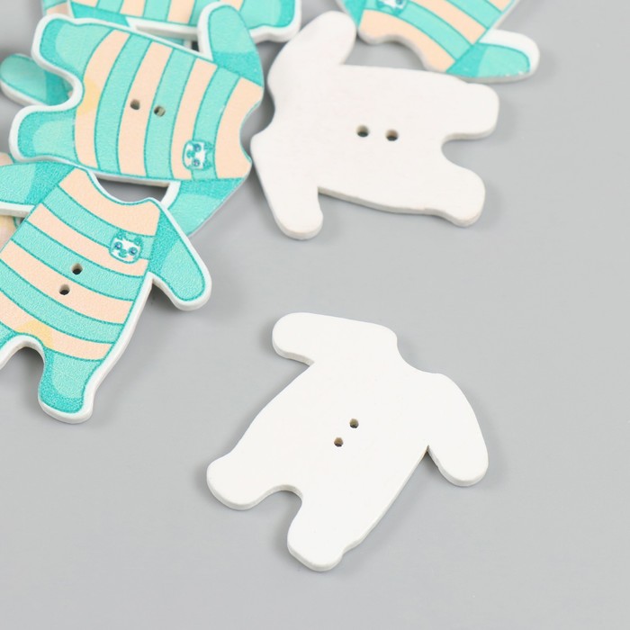 Пуговицы дерево для творчества 2 прокола "Комбинезон зелёный" набор 15 шт 3,2х3,3 см