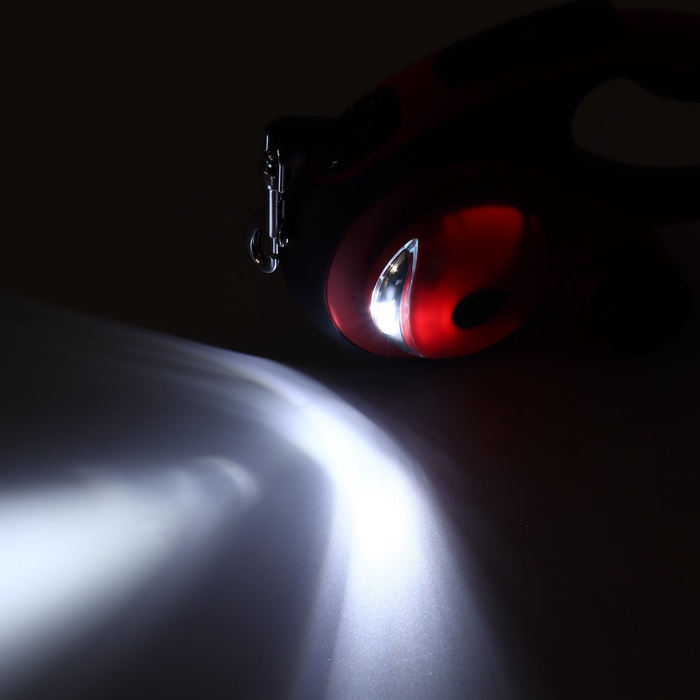 Рулетка оснащена светодиодным фонариком, который позволяет вам и вашей собаке быть видимыми в темное время суток.