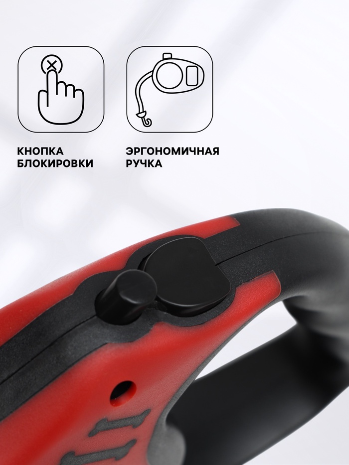 Рулетка "Зарница" оснащена стоп кнопкой, что позволяет легко и быстро остановить передвижение троса, если это необходимо. Это очень удобно, когда нужно контролировать перемещение питомца.