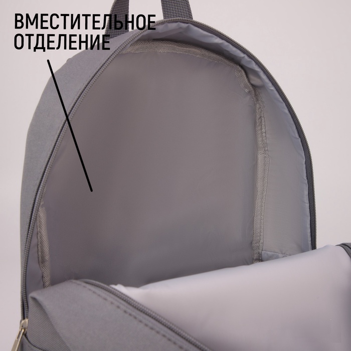 Рюкзак текстильный «Значки», 37 х 33 х 17 см, с липучками, серый
