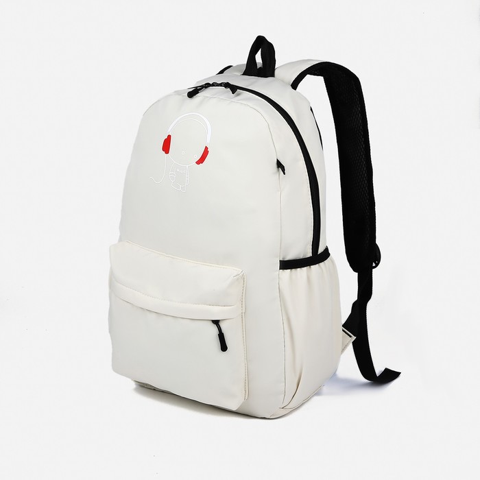 Рюкзак на молнии, 3 наружных кармана, цвет белый
