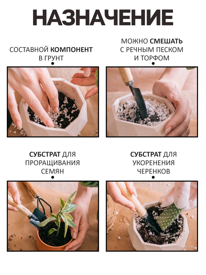 - как составной компонент грунта. Используется при составлении любых почвосмесей;
