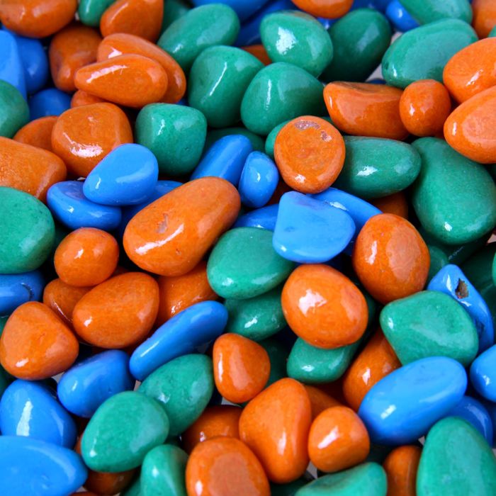 Грунт для аквариума "Галька цветная, оранжевый-салатовый-голубой" 800г фр 8-12 мм