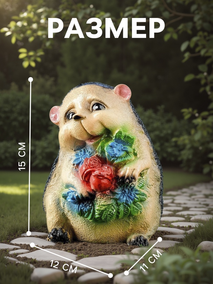 Садовая фигура из гипса «Ежик с цветами», 15×11×12 см