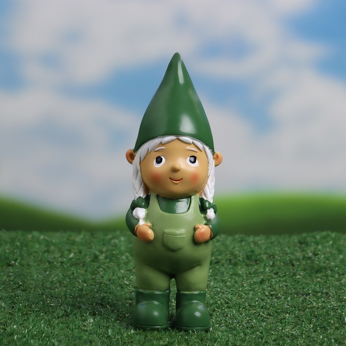 Садовая фигура "Гном с желудями" зеленый 45х26см