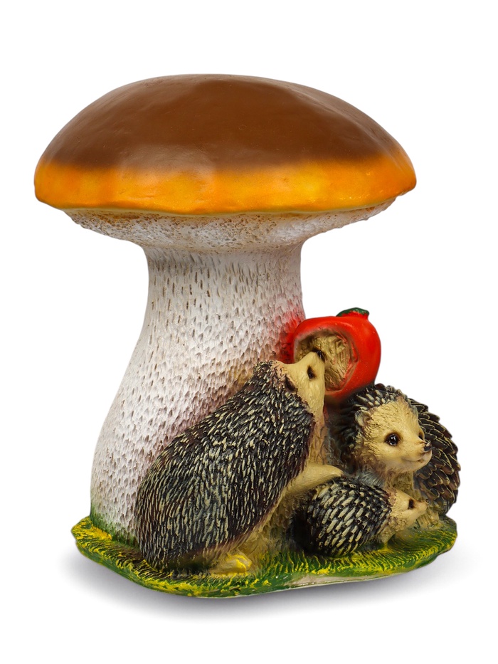 Садовая фигура из полистоуна «Гриб белый с ежами и яблоком», 37×30×30 см