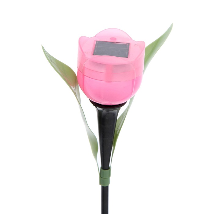 Садовый светильник на солнечной батарее «Тюльпан розовый», 4.5 × 29 × 4.5 см, 1 LED, свечение белое