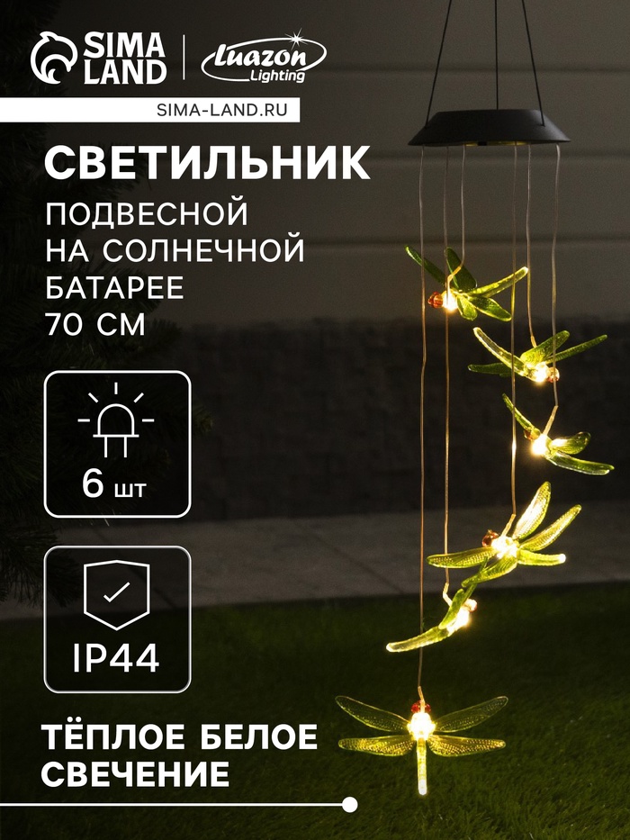 Садовый светильник на солнечной батарее «Стрекозы», 12.5 × 86 × 12.5 см, 6 LED, свечение тёплое белое