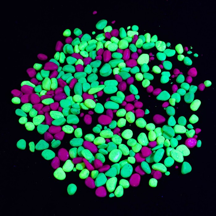 Галька декоративная, флуоресцентная микс: лимонный, зеленый, пурпурный, 350 г, фр.5-10 мм