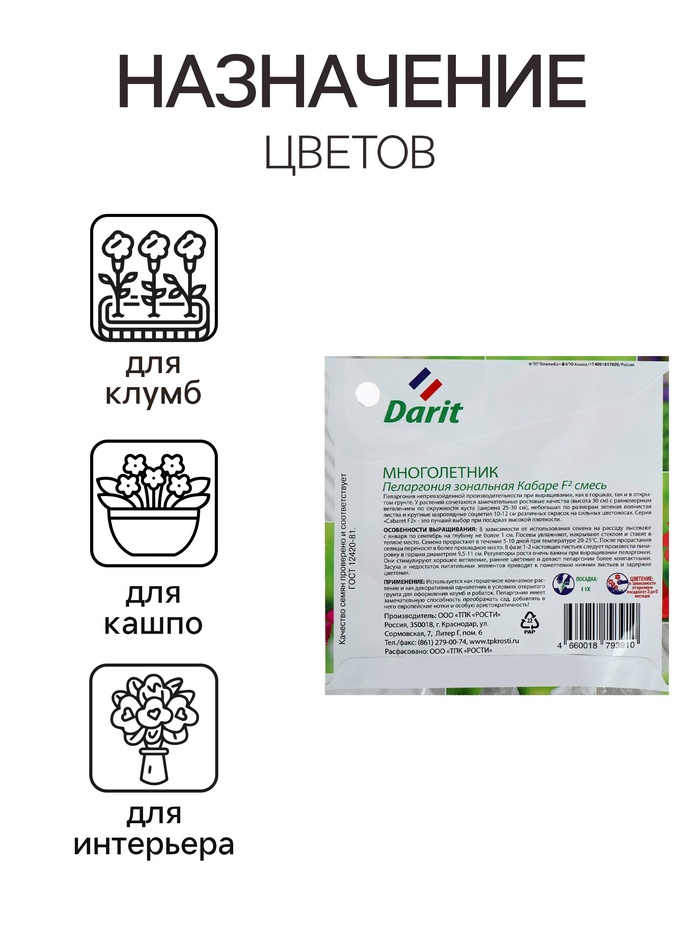 Семена цветов Пеларгония "Кабаре" смесь, Мн, DARIT, F2, 4 шт.