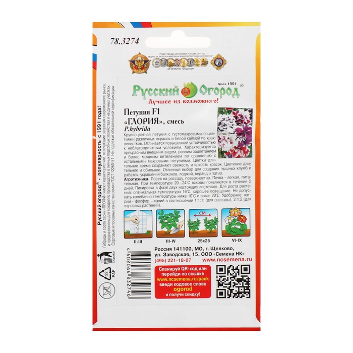 Семена цветов Петуния "Глория" F1 махровая, смесь, серия Профи, О, 8 шт
