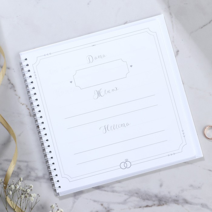 Гостевая книга - прекрасный атрибут свадебного вечера. Записывать пожелания в эту книгу понравится всем гостям. А вам понравится то, что через много много лет вы сможете окунуться еще раз в атмосферу вашего праздника. Идеально для свадьбы в стиле бохо, рустик, минимализм, прованс. Книга сделана из преплётного картона 1,25 мм с глянцевой ламинацией. В книге 40 односторонних листа размером 20х20 см плотностью 80 гр., первый лист для молодоженов с указанием даты торжества и имён, последующие 39 листов для искренних пожеланий счастливой семейной жизни жениху и невесте.