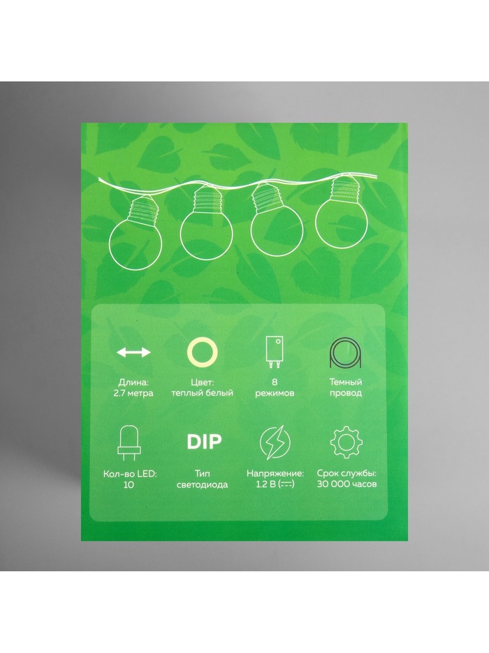 Гирлянда «Нить» 2.7 м с насадками «Белые шары», IP44, тёмная нить, 10 LED, свечение тёплое белое, 8 режимов, солнечная батарея
