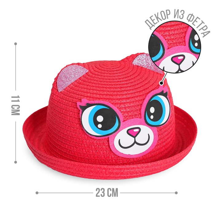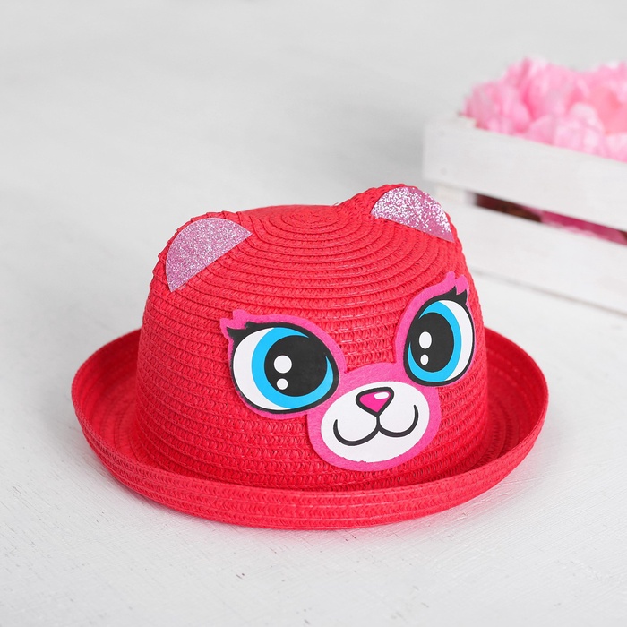 Панама детская соломенна для девочки «Кошечка», с ушками, р-р 52-54, 2-6 лет