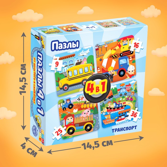 Пазл 4 в 1 «Транспорт»