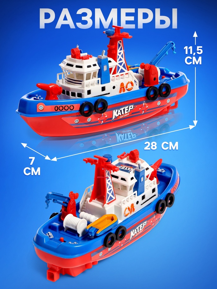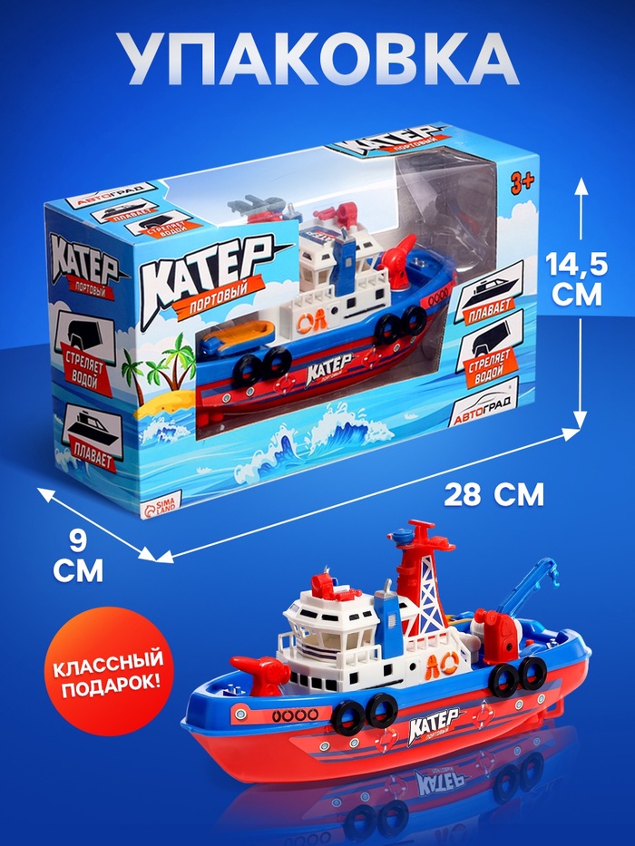 Катер «Городская Гавань», работает от батареек, плавает, стреляет водой