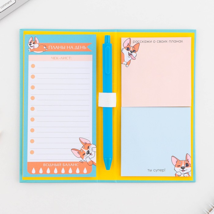 Блок бумаг для записей 3 блока по 30 листов, стикеры, ручка шариковая синяя 0.7 мм «Для тех, укого лапки»